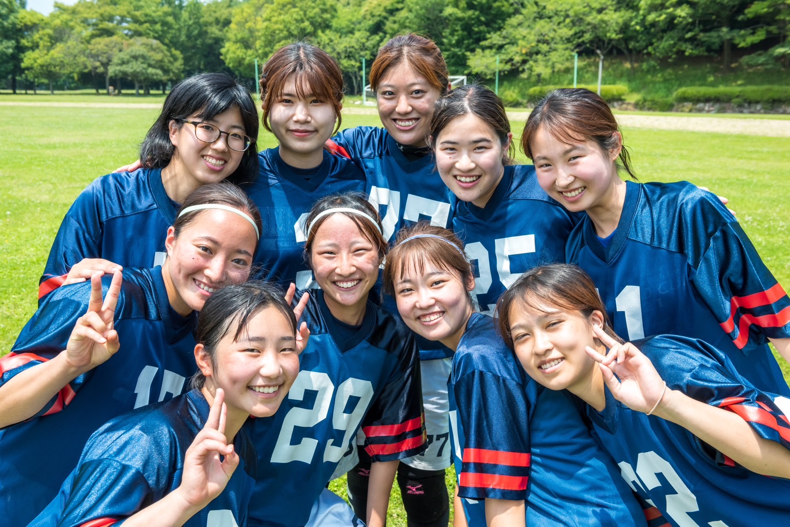 Our team, Keio Women's Touch Football Team UNICORNS is the only touch football team in Keio and is affiliated with Keio's official american football team. Touch football is a six-on-six encampment game that removes tackling and protective gear from american football, making it safer and easier to play. All current members of the team started playing this sport at university, so anyone including beginners, the people who want to play new sport at SFC, who really want to get into something, and those who want to be managers as well as players are always welcome ! We practice 3-4 times a week from 8:00am at the SFC ground to become the best in Japan at the national tournament in December. If you're at all interested, DM us via Instagram or twitter !