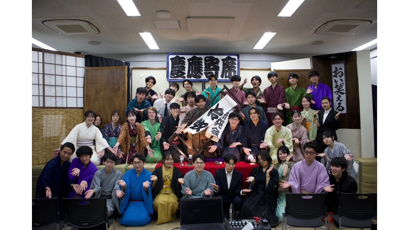 主な活動は落語ですが、学祭などでは漫才やコントもやっている総合お笑いサークルです。毎年入ってくる人のほとんどは落語初心者ですので、今まで落語なんて全然聞いたこともなかったという人も楽しめる環境です。普段は週一回の練習会でネタの練習をし、学祭などで披露するのが主な活動内容です。老人ホームなどの外部で口演をすることもあります。特に力を入れているのは三田祭で、部員総出で一つのことを成し遂げようとする四日間は必ず良い思い出になります。落語好き、お笑い好き、人前で何かをするのが好きな人、人前に立つ練習がしたい人などなどいろいろな人がいます。大学生活を送っていく上で大事な友人がきっと見つかるでしょう!どんな人でも大歓迎です!ぜひ大学生活を一緒に楽しみましょう!!