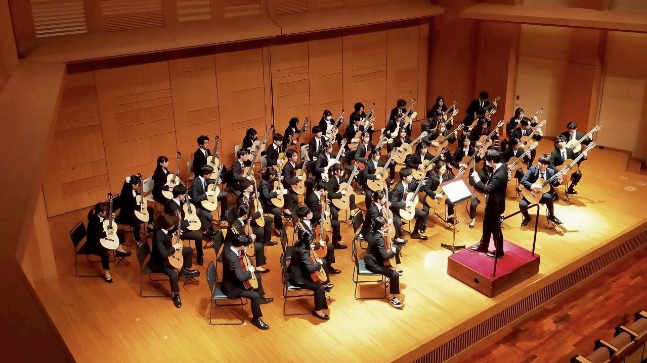 私たちクラシカルギタークラブ(KCGC)は、年に数回の演奏会に向けて、週2回、主に日吉キャンパスでクラシックギターの練習をしています。定期演奏会では迫力満点の全体合奏と、メンバー自由な少人数の重奏を披露します。クラシックギター(クラギ)とはなんぞやと思った皆さん、クラギはピックではなく指で弾く奏法と、柔らかい音色が特徴のギターです。KCGCではクラシックの名曲から流行のポップスまで幅広いジャンルの曲に挑戦できるので、クラギの魅力を存分に味わえます!ギター未経験からスタートした部員も多くいますが、学年の隔たりなく支え合って和気あいあいと活動しています!さらには合宿やパートごとのイベントもてんこ盛り!私たちと一緒にクラギで彩る愉快なキャンパスライフを奏でましょう!