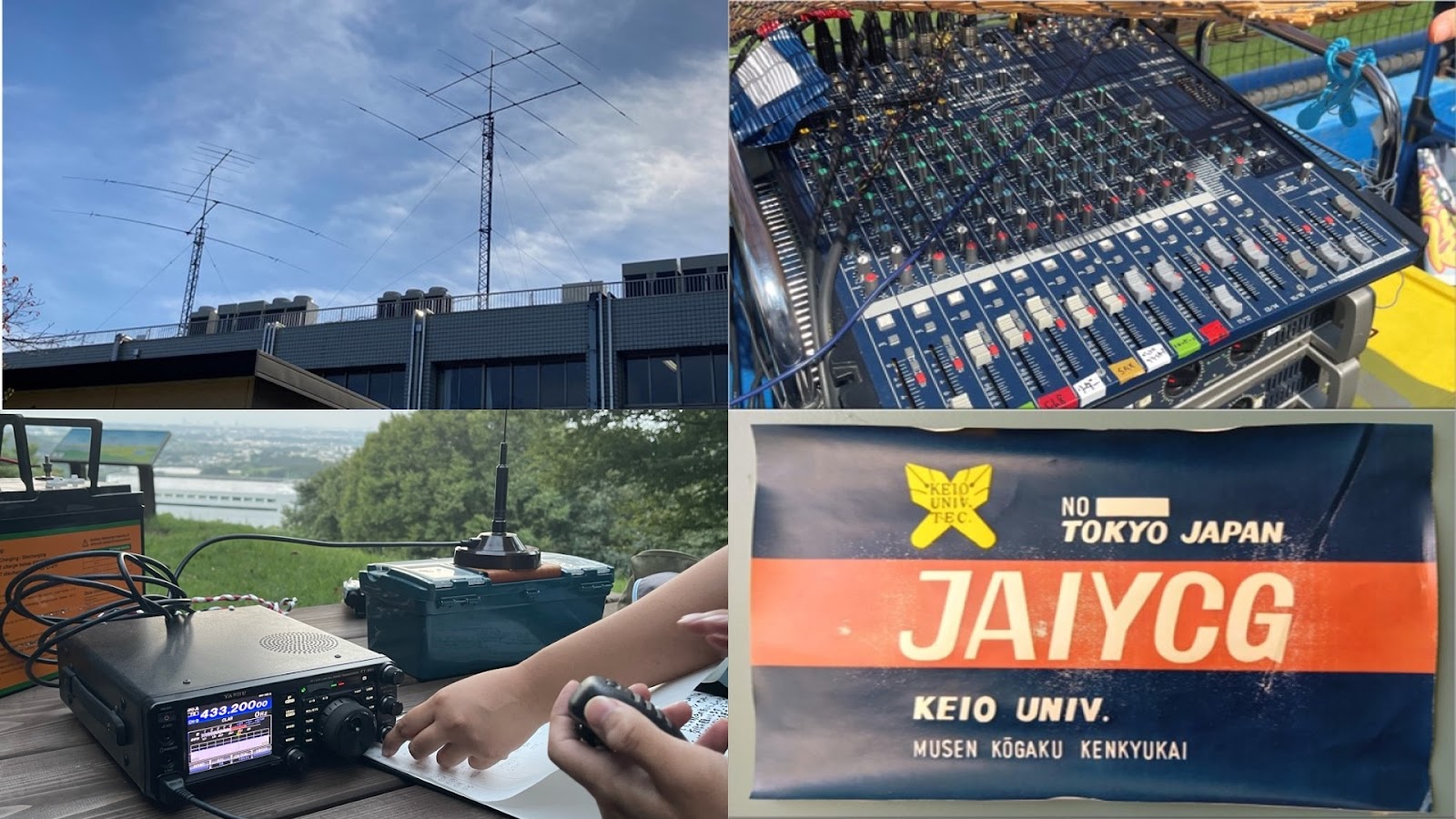 私たち無線工学研究会は、慶應義塾大学公認のアマチュア無線サークルです。六大学野球慶早戦では、音響スタッフとしての活動も行います。アマチュア無線は、自分の出した電波で世界中の人々と交流できる、そんなロマンの溢れるちょっとレトロな遊びです。始めるには資格が必要ですが、私たちがサポートするので初心者や文系の方でも心配無用です。また、一定時間内にどれだけ多くの相手と交信できるか競う「コンテスト」にも参加するので、資格を取った後も無線の知識を深めることができます。兼サーや学業・バイトとの両立も可能です。自分なりの方法で「無研」を楽しめます。新しいことを始めたい!機械やかっこいいものが好き!レトロなものに心惹かれる!野球の試合に携わりたい!そんな方はぜひ来てください!