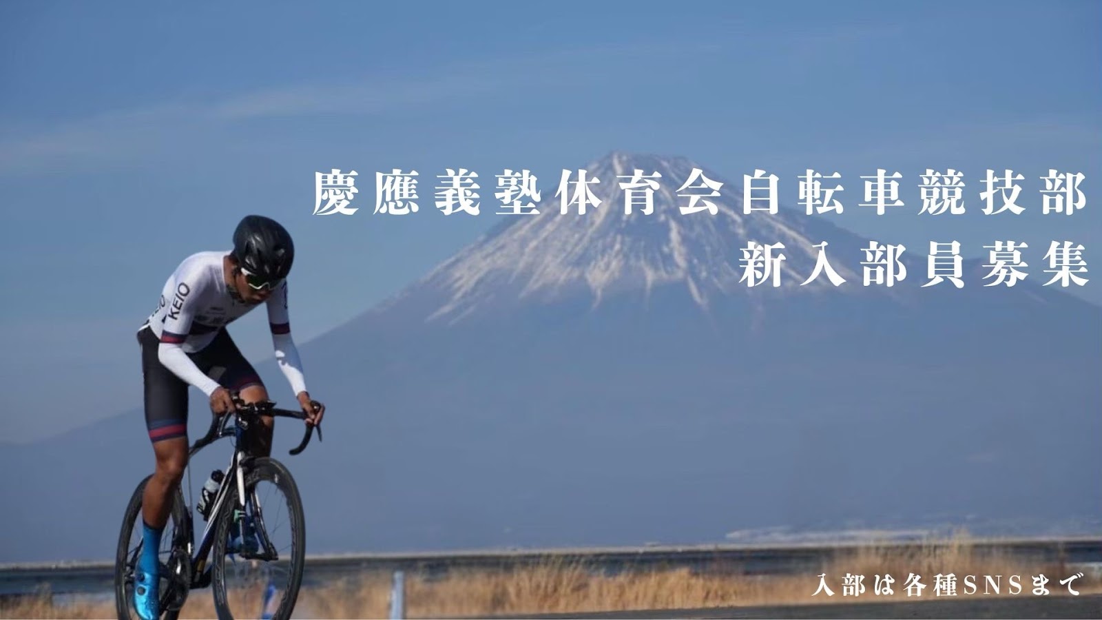 慶應義塾体育会自転車競技部は現存する日本最古の自転車競技チームです。私たちは日本学生自転車競技連盟に所属し、全国各地の自転車レースに出場しています。部員は練習に打ち込みながらも文武両道を重んじています。半数以上の部員は自転車競技を未経験ながら全国大会出場を果たすなど、初心者も活躍できる環境です。自転車競技はロード種目、トラック種目と求められる力も様々で、自分の長所を活かせる競技であるところが魅力だと感じます。大学で新しく競技を始める方にも必ず活躍の場が広がっております。やる気に溢れる方の入部を心よりお待ちしております。
